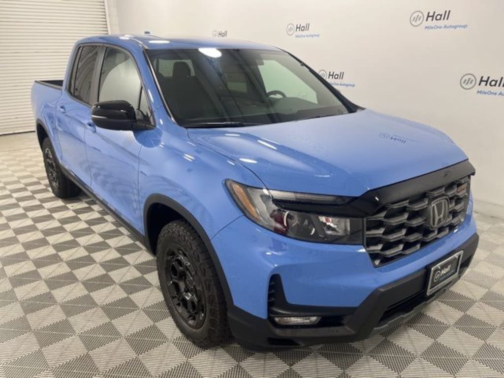 Black Leather, 4-Wheel Disc Brakes, 4.33 Axle Ratio, 7 Speakers, ABS brakes, Air Conditioning, Alloy wheels, AM/FM radio: SiriusXM, Auto-dimming Rear-View mirror, Automatic temperature control, Blind Spot Information (BSI) System warning, Bluetooth® Hands-Free Link, Brake assist, Bumpers: body-color, Compass, Delay-off headlights, Driver door bin, Driver vanity mirror, Driver's Seat Mounted Armrest, Dual front impact airbags, Dual front side impact airbags, Electronic Stability Control, Emergency communication system: HondaLink Assist, Exterior Parking Camera Rear, Four wheel independent suspension, Front anti-roll bar, Front Bucket Seats, Front dual zone A/C, Front fog lights, Front reading lights, Fully automatic headlights, Garage door transmitter: HomeLink, Heated door mirrors, Heated Front Bucket Seats, Heated front seats, Heated steering wheel, Honda Satellite-Linked Navigation System, Illuminated entry, Leather Seat Trim, Leather steering wheel, Low tire pressure warning, Memory seat, Navigation system: Honda Satellite-Linked Navigation System, Occupant sensing airbag, Outside temperature display, Overhead airbag, Overhead console, Panic alarm, Passenger door bin, Passenger seat mounted armrest, Passenger vanity mirror, Power door mirrors, Power driver seat, Power moonroof, Power passenger seat, Power steering, Power windows, Radio data system, Radio: 215-Watt Audio System w/7 Speakers, Rear air conditioning, Rear anti-roll bar, Rear reading lights, Rear seat center armrest, Rear step bumper, Rear window defroster, Remote keyless entry, Security system, SiriusXM, Speed control, Speed-sensing steering, Split folding rear seat, Steering wheel mounted audio controls, Tachometer, Telescoping steering wheel, Tilt steering wheel, Traction control, Trip computer, Turn signal indicator mirrors, Variably intermittent wipers, and Wheels: 18" HPD Black Alloy. Every Internet Price includes current applicable offers. Your additional costs are sales tax, tag and title fees for the state in which the vehicle will be registered, any dealer-installed options, and a dealer processing fee ($800 Maryland; not required by law); ($477 Pennsylvania); ($995 Virginia & North Carolina). Prices are subject to change, and prior sales are excluded. While every reasonable effort is made to ensure the accuracy of this information, we are not responsible for any errors or omissions contained on these pages. Please verify any information in question with the dealer. This vehicle was built without the Blind Spot Equipment Package, See dealer for complete details. Price includes: $2500 - 2025 Ridgeline Sales Credit. Exp. 11/03/2025
