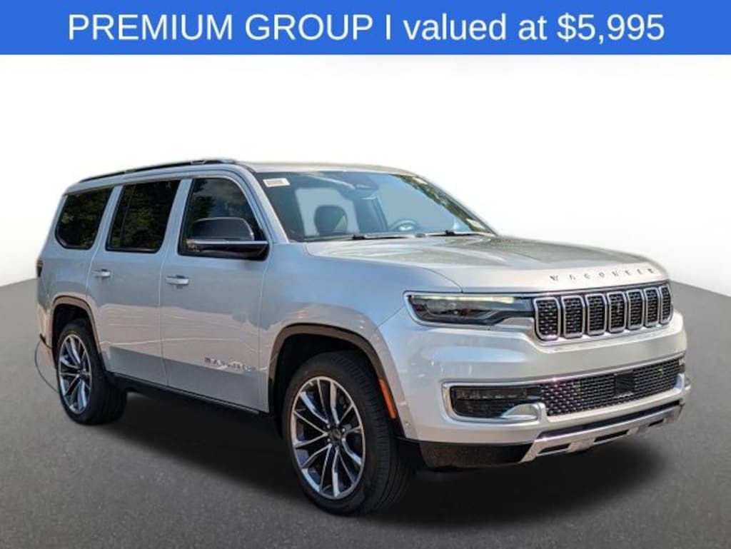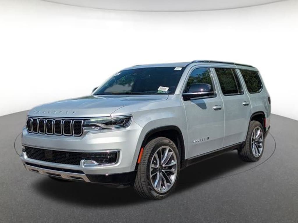 Premium Group I (118 MPH Maximum Speed Calibration, 19 Speaker McIntosh Audio System, 3 Panel Sunroof, Adjustable Roof Rail Crossbars, Cargo Cover, Luxury Front & Rear Floor Mats, Power Deployable Running Boards, Reversible Carpet/Vinyl Cargo Mat, and Wheels: 22" x 9.0" Premium 3 Aluminum), Quick Order Package 25N, 10 Speakers, 3.55 Rear Axle Ratio, 3rd row seats: bench, 4-Wheel Disc Brakes, ABS brakes, Air Conditioning, Alloy wheels, AM/FM radio: SiriusXM with 360L, Anti-whiplash front head restraints, Apple CarPlay/Android Auto, Audio memory, Auto High-beam Headlights, Auto-dimming door mirrors, Auto-dimming Rear-View mirror, Auto-leveling suspension, Automatic temperature control, Brake assist, Bumpers: body-color, Compass, Delay-off headlights, Driver door bin, Driver vanity mirror, Driver's Seat Mounted Armrest, Dual front impact airbags, Dual front side impact airbags, Electronic Stability Control, Emergency communication system: Jeep Connect, Four wheel independent suspension, Front anti-roll bar, Front Bucket Seats, Front Center Armrest w/Storage, Front dual zone A/C, Front fog lights, Front License Plate Bracket, Front reading lights, Fully automatic headlights, Garage door transmitter, Genuine wood console insert, Genuine wood dashboard insert, Genuine wood door panel insert, Heads-Up Display, Heated door mirrors, Heated front seats, Heated rear seats, Heated steering wheel, Illuminated entry, Knee airbag, Leather Trimmed Bucket Seats, Low tire pressure warning, Memory seat, Navigation System, Normal Duty Suspension, Occupant sensing airbag, Outside temperature display, Overhead airbag, Overhead console, Panic alarm, ParkView Rear Back-Up Camera, Passenger door bin, Passenger seat mounted armrest, Passenger vanity mirror, Power adjustable front head restraints, Power door mirrors, Power driver seat, Power Liftgate, Power passenger seat, Power steering, Power windows, Radio data system, Radio: Uconnect 5 Nav w/10.1" Display, Rain sensing wipers, Rear air conditioning, Rear anti-roll bar, Rear dual zone A/C, Rear reading lights, Rear seat center armrest, Rear window defroster, Rear window wiper, Reclining 3rd row seat, Remote keyless entry, Security system, Speed control, Speed-sensing steering, Speed-Sensitive Wipers, Split folding rear seat, Steering wheel memory, Steering wheel mounted audio controls, Tachometer, Telescoping steering wheel, Tilt steering wheel, Traction control, Trip computer, Turn signal indicator mirrors, Variably intermittent wipers, Ventilated front seats, Voltmeter, and Wheels: 20" x 9.0" Machine Face Painted Aluminum.