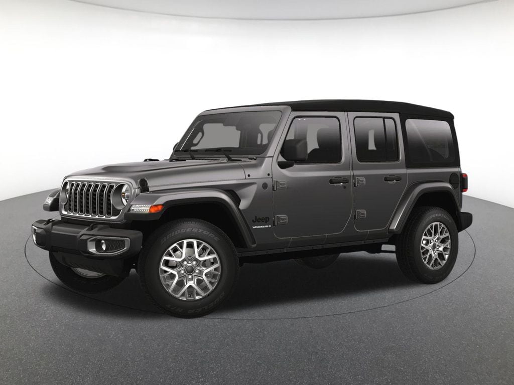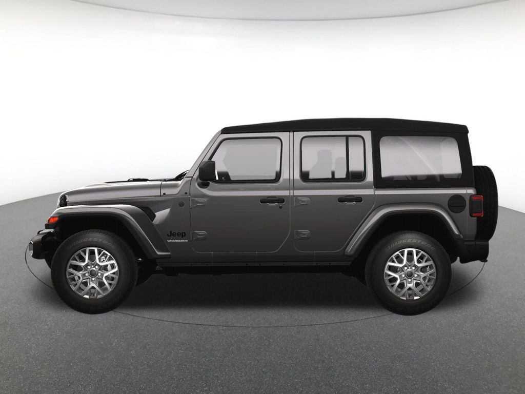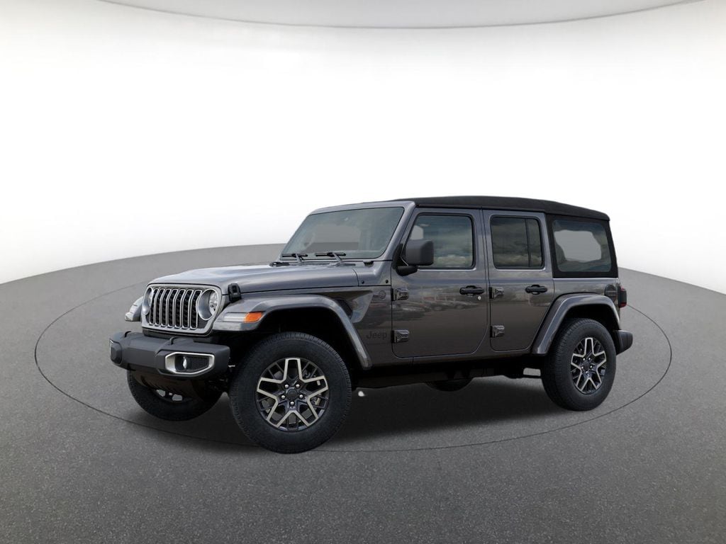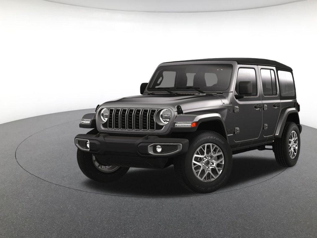 Quick Order Package 24G Sahara, Safety Group (Auto High Beam Headlamp Control, Blind Spot & Cross Path Detection, and ParkSense Rear Park Assist System), 110 MPH Vehicle Max Speed Calibration, 3.45 Overall Top Gear Ratio, 4-Wheel Disc Brakes, 4G LTE Wi-Fi Hot Spot, 8 Speakers, ABS brakes, Air Conditioning, Alloy wheels, AM/FM radio: SiriusXM, Apple CarPlay, Apple CarPlay/Android Auto, Automatic temperature control, Aux Battery, Brake assist, Cloth Low-Back Bucket Seats, Compass, Connectivity - US/Canada, Delay-off headlights, Driver door bin, Driver vanity mirror, Dual front impact airbags, Dual front side impact airbags, Electronic Stability Control, Emergency communication system: Jeep Connect, Front anti-roll bar, Front Bucket Seats, Front Center Armrest w/Storage, Front dual zone A/C, Front fog lights, Front License Plate Bracket (DISC), Front reading lights, Fully automatic headlights, Google Android Auto, Heated door mirrors, Heated front seats, Heated steering wheel, Heavy Duty Suspension w/Gas Shocks, Illuminated entry, Integrated Center Stack Radio, Integrated roll-over protection, Jeep Trail Rated Kit, Low tire pressure warning, MOPAR All-Weather Floor Mats, Non-Lock Fuel Cap w/o Discriminator, Occupant sensing airbag, Outside temperature display, Overhead airbag, Panic alarm, ParkView Rear Back-Up Camera, Passenger door bin, Passenger vanity mirror, Power door mirrors, Power steering, Power windows, Premium Black Sunrider Soft Top (DISC), Radio data system, Radio: Uconnect 5 w/12.3" Display, Rear anti-roll bar, Rear reading lights, Remote keyless entry, Security system, Speed control, Split folding rear seat, Steering wheel mounted audio controls, Stop-Start Dual Battery System, Tachometer, Telescoping steering wheel, Tilt steering wheel, Traction control, Trip computer, Variably intermittent wipers, Voltmeter, and Wheels: 18" x 7.5" Machine/Painted Gray.