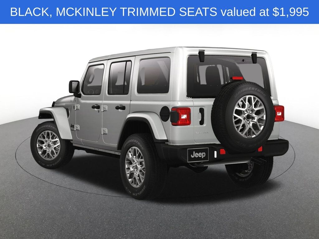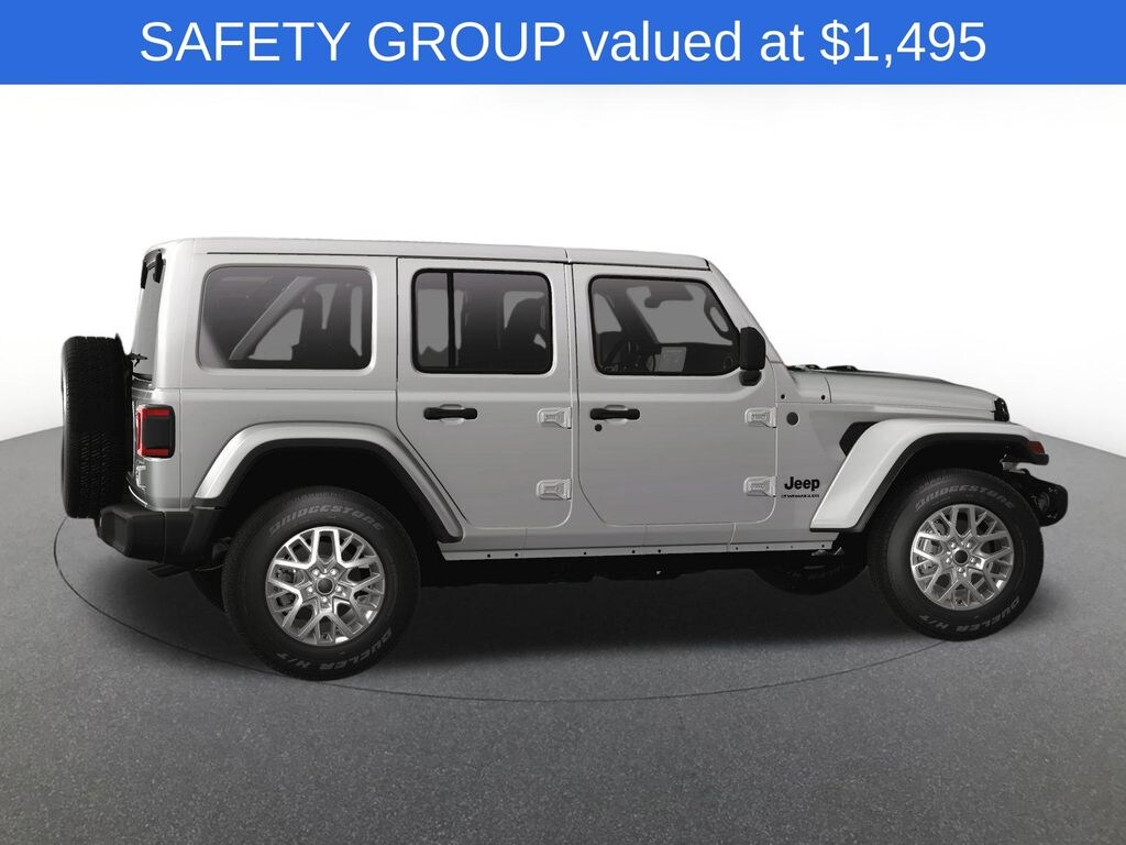 Quick Order Package 24G Sahara, Safety Group (Auto High Beam Headlamp Control, Blind Spot & Cross Path Detection, and ParkSense Rear Park Assist System), 110 MPH Vehicle Max Speed Calibration, 3.45 Overall Top Gear Ratio, 4-Wheel Disc Brakes, 4G LTE Wi-Fi Hot Spot, 8 Speakers, ABS brakes, Air Conditioning, Alloy wheels, AM/FM radio: SiriusXM, Apple CarPlay, Apple CarPlay/Android Auto, Automatic temperature control, Aux Battery, Body Color 3-Piece Hard Top, Brake assist, Cloth Low-Back Bucket Seats, Compass, Connectivity - US/Canada, Delay-off headlights, Driver door bin, Driver vanity mirror, Dual front impact airbags, Dual front side impact airbags, Electronic Stability Control, Emergency communication system: Jeep Connect, Freedom Panel Storage Bag, Front anti-roll bar, Front Bucket Seats, Front Center Armrest w/Storage, Front dual zone A/C, Front fog lights, Front License Plate Bracket (DISC), Front reading lights, Fully automatic headlights, Google Android Auto, Heated door mirrors, Heated front seats, Heated steering wheel, Heavy Duty Suspension w/Gas Shocks, Illuminated entry, Integrated Center Stack Radio, Integrated roll-over protection, Jeep Trail Rated Kit, Low tire pressure warning, MOPAR All-Weather Floor Mats, Non-Lock Fuel Cap w/o Discriminator, Occupant sensing airbag, Outside temperature display, Overhead airbag, Panic alarm, ParkView Rear Back-Up Camera, Passenger door bin, Passenger vanity mirror, Power door mirrors, Power steering, Power windows, Radio data system, Radio: Uconnect 5 w/12.3" Display, Rear anti-roll bar, Rear reading lights, Rear Window Defroster, Rear Window Wiper/Washer, Remote keyless entry, Security system, Speed control, Split folding rear seat, Steering wheel mounted audio controls, Stop-Start Dual Battery System, Tachometer, Telescoping steering wheel, Tilt steering wheel, Traction control, Trip computer, Variably intermittent wipers, Voltmeter, and Wheels: 18" x 7.5" Machine/Painted Gray.