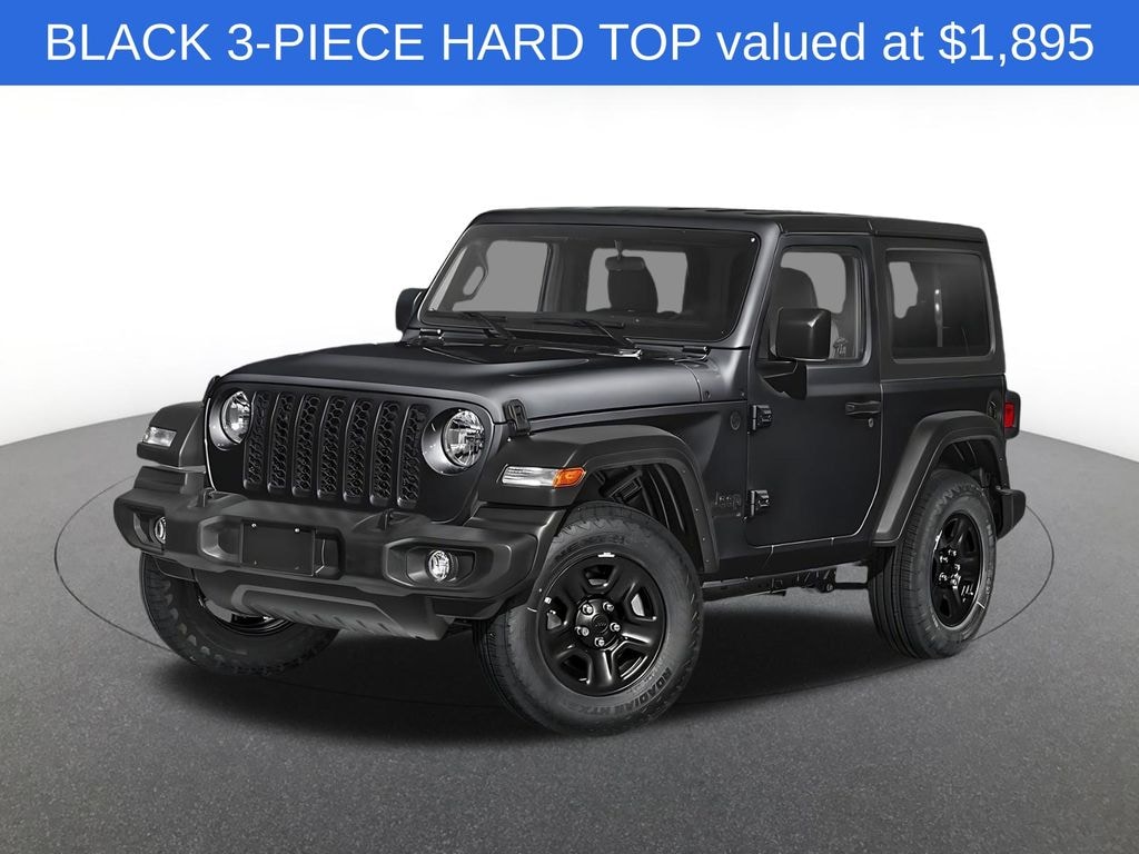 Quick Order Package 23B Sport, Trailer Tow and Auxiliary Switch Group (7 and 4 Pin Wiring Harness, Auxiliary Switches, and Class II Receiver Hitch), 12.3" Touchscreen Display, 3.45 Overall Top Gear Ratio, 4-Wheel Disc Brakes, 4G LTE Wi-Fi Hot Spot, 8 Speakers, ABS brakes, Air Conditioning, AM/FM radio: SiriusXM with 360L, Apple CarPlay, Apple CarPlay/Android Auto, Aux Battery, Black 3-Piece Hard Top, Brake assist, Cloth Low-Back Bucket Seats, Compass, Connectivity - US/Canada, Deep Tint Sunscreen Windows, Delay-off headlights, Driver door bin, Driver vanity mirror, Dual front impact airbags, Dual front side impact airbags, Electronic Stability Control, For More Info, Call 800-643-2112, Freedom Panel Storage Bag, Front anti-roll bar, Front Bucket Seats, Front Center Armrest w/Storage, Front fog lights, Front reading lights, Google Android Auto, Illuminated entry, Integrated Center Stack Radio, Integrated roll-over protection, Low tire pressure warning, MOPAR All-Weather Floor Mats, Myflexcare Service Plan, Non-Lock Fuel Cap Without Discriminator, Normal Duty Suspension, Occupant sensing airbag, Outside temperature display, Overhead airbag, Panic alarm, ParkView Rear Back-Up Camera, Passenger door bin, Passenger vanity mirror, Power steering, Power windows, Radio data system, Radio: Uconnect 5 with 12.3" Display, Rear anti-roll bar, Rear reading lights, Rear Window Defroster, Rear Window Wiper/Washer, Remote keyless entry, SiriusXM Radio Service, SiriusXM with 360L, Speed control, Steering wheel mounted audio controls, Stop-Start Dual Battery System, Tachometer, Telescoping steering wheel, Tilt steering wheel, Traction control, Trip computer, Variably intermittent wipers, and Wheels: 17" x 7.5" Black Steel Styled.