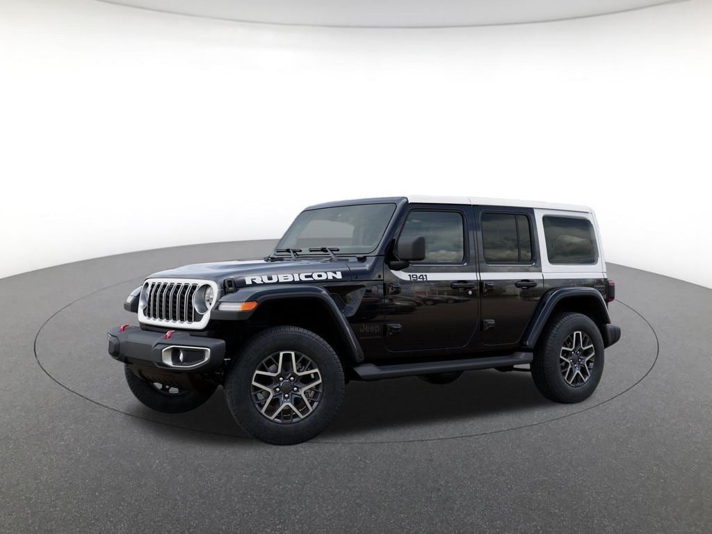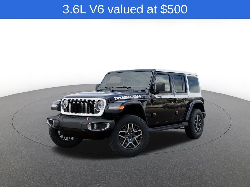 Quick Order Package 24G, Sahara Popular Equipment Group (12.3" Touchscreen Display, 4G LTE Wi-Fi Hot Spot, Alpine Premium Audio System, Apple CarPlay, Auto High Beam Headlamp Control, Auto-Dimming Rear-View Mirror, Blind Spot and Cross Path Detection, Connected Travel and Traffic Services, Connectivity - US/Canada, For More Info, Call 800-643-2112, Google Android Auto, GPS Navigation, Hard Seat Back, HD Radio, Integrated Center Stack Radio, Integrated Off-Road Camera, Integrated Voice Command with Bluetooth, Leather Wrapped Park Brake Handle, Leather Wrapped Shift Knob, McKinley Trimmed Seats, ParkSense Rear Park Assist System, Power 4-Way Driver Lumbar Adjust, Power 4-Way Passenger Lumbar Adjust, Power Adjust 8-Way Driver Seat, Power Adjust 8-Way Front Passenger Seat, Radio: Uconnect 5 Navigation with 12.3" Display, Side Steps, SiriusXM Radio Service, SiriusXM with 360L, and Universal Garage Door Opener), Whitecap Package (1941 Side Decals, Freedom Panel Storage Bag, Rear Window Defroster, Rear Window Wiper/Washer, White 3-Piece Hard Top, and White Grille with Platinum Silver Rings), 3.45 Overall Top Gear Ratio, 4-Wheel Disc Brakes, 8 Speakers, ABS brakes, Air Conditioning, Alloy wheels, AM/FM radio: SiriusXM with 360L, Apple CarPlay/Android Auto, Automatic temperature control, Aux Battery, Brake assist, Cloth Low-Back Bucket Seats, Compass, Delay-off headlights, Driver door bin, Driver vanity mirror, Dual front impact airbags, Dual front side impact airbags, Electronic Stability Control, Emergency communication system: Jeep Connect, Front anti-roll bar, Front Bucket Seats, Front Center Armrest w/Storage, Front dual zone A/C, Front fog lights, Front License Plate Bracket, Front reading lights, Fully automatic headlights, Heated door mirrors, Heated front seats, Heated steering wheel, Heavy Duty Suspension with Gas Shocks, Illuminated entry, Integrated roll-over protection, Jeep Trail Rated Kit, Low tire pressure warning, MOPAR All-Weather Floor Mats, MOPAR Doors Off Mirror Kit, Non-Lock Fuel Cap Without Discriminator, Occupant sensing airbag, Outside temperature display, Overhead airbag, Panic alarm, ParkView Rear Back-Up Camera, Passenger door bin, Passenger vanity mirror, Power door mirrors, Power steering, Power windows, Radio data system, Radio: Uconnect 5 with 12.3" Display, Rear anti-roll bar, Rear reading lights, Remote keyless entry, Security system, Speed control, Split folding rear seat, Steering wheel mounted audio controls, Stop-Start Dual Battery System, Tachometer, Telescoping steering wheel, Tilt steering wheel, Traction control, Trip computer, Variably intermittent wipers, Voltmeter, and Wheels: 18" x 7.5" Machine/Painted Gray.