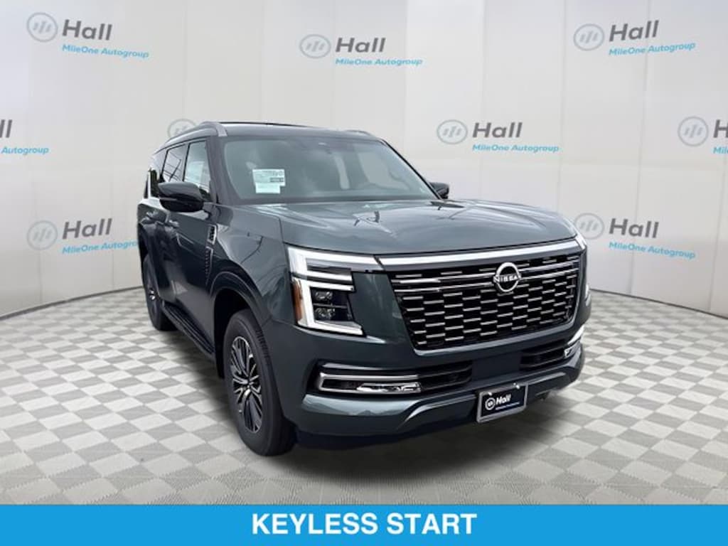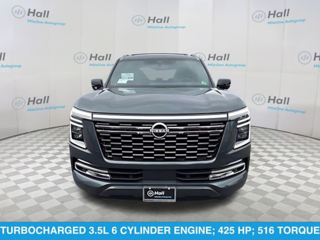 We are currently offering Vehicle Purchase Home Delivery by appointment. Please contact for details. We are currently offering Vehicle Purchase Home Delivery by appointment. Please contact for details. Captain's Chair Seat Package (2nd Row Center Console with Two Cupholders, 2nd Row Outboard Captain's Chairs with Armrests, and EZ Flex Second Row Seating System with One Touch Release), 4WD, 12 Speakers, 3rd row seats: split-bench, 4-Wheel Disc Brakes, ABS brakes, Air Conditioning, Alloy wheels, AM/FM radio: SiriusXM w/360L, Anti-whiplash front head restraints, Apple CarPlay/Android Auto, Auto High-beam Headlights, Auto tilt-away steering wheel, Auto-dimming door mirrors, Auto-dimming Rear-View mirror, Auto-leveling suspension, Automatic temperature control, Brake assist, Bumpers: body-color, Carpeted Floor Mats with Captain Chairs, Center Front Spoiler, Compass, Cross Bars, Delay-off headlights, Driver door bin, Driver vanity mirror, Dual front impact airbags, Dual front side impact airbags, Electronic Stability Control, Emergency communication system: NissanConnect Services, Four wheel independent suspension, Front anti-roll bar, Front Bucket Seats, Front Center Armrest, Front dual zone A/C, Front reading lights, Fully automatic headlights, Garage door transmitter: myQ Connected Garage, Genuine wood dashboard insert, Heated door mirrors, Heated Front Bucket Seats, Heated front seats, Heated steering wheel, HVAC memory, Illuminated entry, Knee airbag, Leather steering wheel, Low tire pressure warning, Memory seat, Navigation system: Google Maps, Occupant sensing airbag, Outside temperature display, Overhead airbag, Overhead console, Panic alarm, Passenger door bin, Passenger vanity mirror, Power door mirrors, Power driver seat, Power Liftgate, Power passenger seat, Power steering, Power windows, Premium Paint, Radio: NissanConnect with SiriusXM 360L, Rain sensing wipers, Rear air conditioning, Rear anti-roll bar, Rear reading lights, Rear seat center armrest, Rear window defroster, Rear window wiper, Reclining 3rd row seat, Remote keyless entry, Security system, Speed control, Speed-sensing steering, Speed-Sensitive Wipers, Splash Guards, Split folding rear seat, Spoiler, Steering wheel memory, Steering wheel mounted audio controls, Tachometer, TailorFit Seat Trim, Telescoping steering wheel, Tilt steering wheel, Traction control, Trip computer, Turn signal indicator mirrors, Variably intermittent wipers, Voltmeter, and Wheels: 20" x 8.5J Machined and Painted Alloy. *Dealer Price includes any freight charges and a dealer processing fee of $995, but does not include sales tax, tag, title, and registration fees for the state in which the vehicle will be registered. Prior sales are excluded from these offers. Vehicles which have not yet arrived to the dealership will be noted as In-transit on dealer's website. In-transit vehicles and newly arrived in stock vehicles may be displayed using stock images provided by the manufacturer until we are able to upload actual photographs of the vehicle. Please verify any information in question with the dealer.