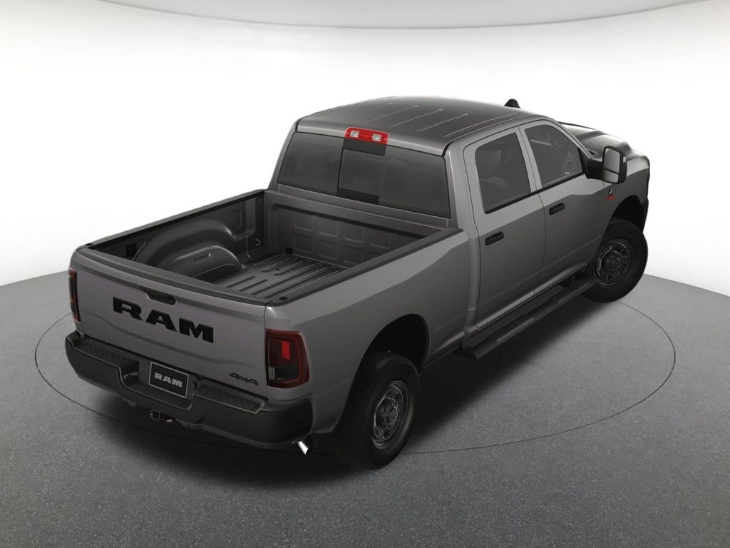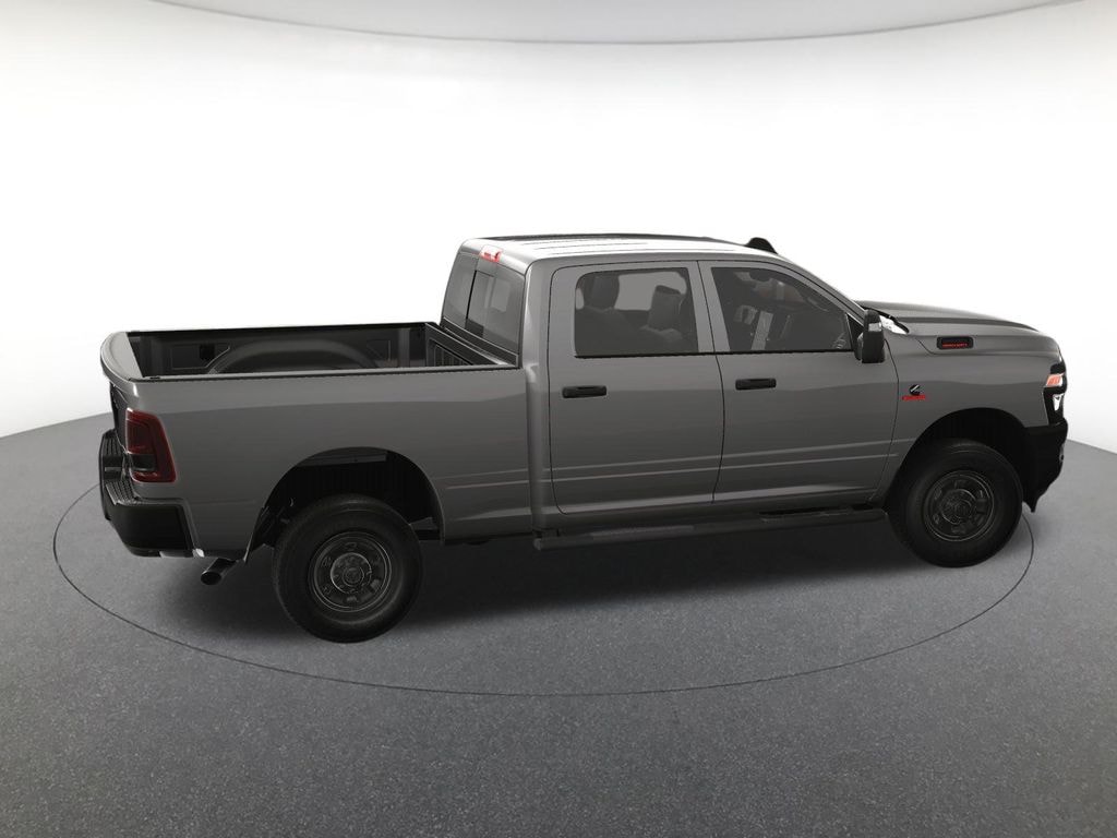 Bed Convenience Group (LED Bed Lighting and MOPAR Spray In Bedliner), Cold Weather Group (Engine Block Heater and MOPAR Winter Front Grille Cover), Quick Order Package 24A Tradesman, Safety Group (Active Lane Management System, Adaptive Steering System, Auto High Beam Headlamp Control, Auto-Dimming Rear-View Mirror, Cluster 7.0" TFT Color Display, Drowsy Driver Detection, Luxury Steering Wheel, Rain Sensitive Windshield Wipers, Steering Wheel Mounted Audio Controls, and Traffic Sign Recognition), Tradesman Level 1 Equipment Group (115V Auxiliary Front Power Outlet, 12" Touchscreen Display, 2 Way Rear Headrest Seat, 4 Way Front Headrests, 40/20/40 Split Bench Seat, 400W Inverter, 4G LTE Wi-Fi Hot Spot, Air Conditioning ATC w/Dual Zone Control, Alexa Built-In, Anti-Spin Differential Rear Axle, Apple CarPlay, Black Exterior Mirrors, Carpet Floor Covering, Cloth 40/20/40 Bench Seat, Connected Travel & Traffic Services, Connectivity - US/Canada, Disassociated Touchscreen Display, Emergency Vehicle Alert System (EVAS), Exterior 115V AC Outlet, Exterior Mirrors Courtesy Lamps, Exterior Mirrors w/Heating Element, Exterior Mirrors w/Supplemental Signals, Front & Rear Floor Mats, Front Armrest w/Cupholders, Global Telematics Box Module (TBM), Google Android Auto, GPS Antenna Input, GPS Navigation, HD Radio, Integrated Voice Command w/Bluetooth, Manual Adjust 4-Way Driver Seat, Manual Adjust 4-Way Front Passenger Seat, Manual Folding Exterior Mirrors, Manual Telescoping Mirrors, Mirror Running Lights, Mopar Black Tubular Side Steps, Off-Road Info Pages, ParkSense Front/Rear Park Assist System, Power Adjust Mirrors, Power Adjustable Convex Aux Mirrors, Power Heated Folding Telescope Mirrors, Radio: Uconnect 5 Nav w/12.0" Display, Rear Folding Seat, Rear Power Sliding Window, Remote USB Port - Charge Only, Selectable Tire Fill Alert, SiriusXM Radio Service, SiriusXM w/360L, Storage Tray, Tinted Acoustic Windshield Glass, and Trailer Tow Pages), 4-Wheel Disc Brakes, 6 Speakers, ABS brakes, Air Conditioning, AM/FM radio: SiriusXM, Apple CarPlay/Android Auto, Black Wheel Center Hub, Blind Spot & Cross Path Detection, Brake assist, Compass, Delay-off headlights, Delete Deployable Bed Step (DISC), Driver door bin, Dual front impact airbags, Dual front side impact airbags, Electronic Stability Control, Front anti-roll bar, Front Center Armrest w/Storage, Front fog lights, Front License Plate Bracket, Front reading lights, Fully automatic headlights, Heavy Duty Vinyl 40/20/40 Split Bench Seat, Illuminated entry, LED Tail Lamps, Low tire pressure warning, Occupant sensing airbag, Outside temperature display, Overhead airbag, Overhead console, Panic alarm, ParkView Rear Back-Up Camera, Passenger door bin, Passenger vanity mirror, Power steering, Power windows, Radio data system, Radio: Uconnect 5 w/