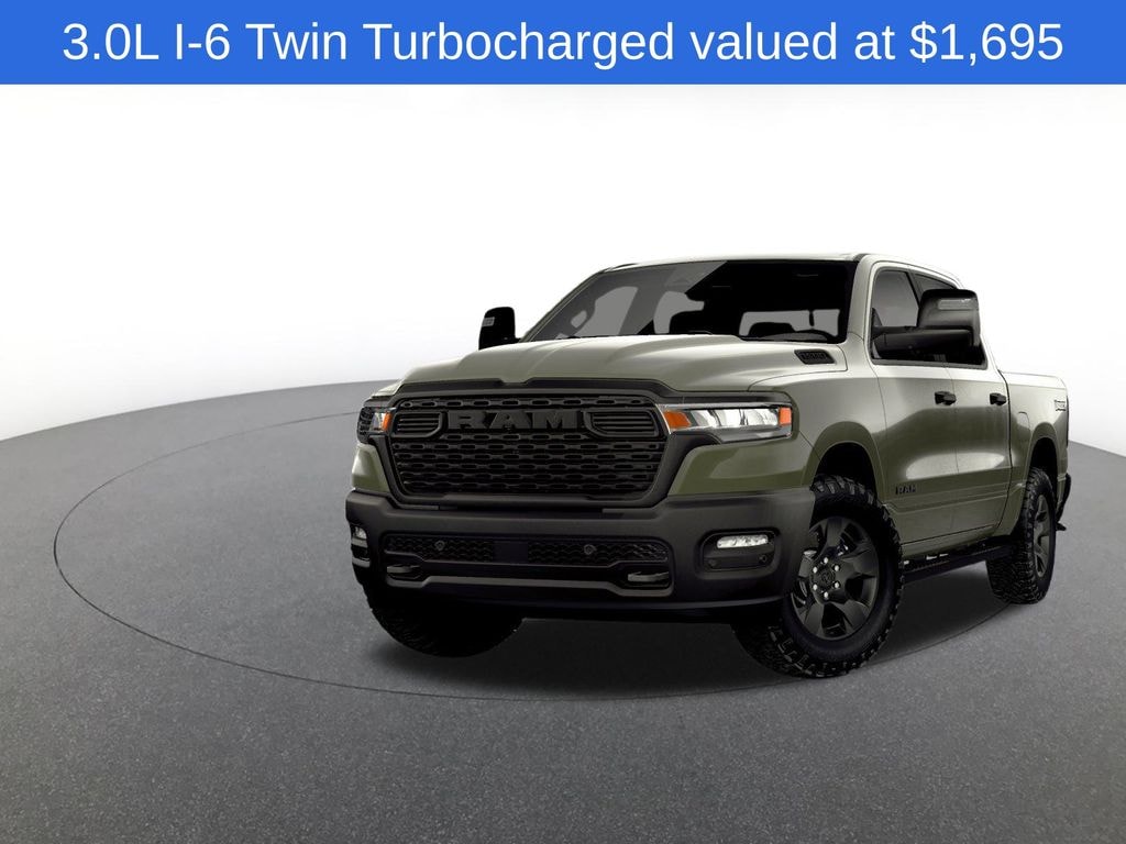Bed Utility Group (400W Inverter, Exterior 115V AC Outlet, MOPAR 4 Adjustable Cargo Tie-Down Hooks, MOPAR Deployable Bed Step, MOPAR Spray In Bedliner, and Pick-Up Box Lighting), Quick Order Package 21B Warlock (115V Auxiliary Power Outlet, Cluster 7.0" TFT Color Display, E-Locker Rear Axle, Front LED Fog Lamps, Front Performance Tuned Shock Absorbers, MOPAR Front & Rear Rubber Floor Mats, Raised Ride Height, Rear Performance Tuned Shock Absorbers, Selec-Speed Control, Tow Hooks, Warlock Decal, and Wheels: 18" x 8.0" Black Painted Aluminum), Tradesman Level 1 Equipment Group (2nd Row In Floor Storage Bins, Cloth Bench Seat, Front & Rear Floor Mats, Rear Power Sliding Window, SiriusXM Radio Service, and SiriusXM Satellite Radio), Trailer Tow Group (Accent Color Tailgate Handle, Black Exterior Mirrors, Black Trailer Tow Power Mirrors, Exterior Mirrors Courtesy Lamps, Exterior Mirrors w/Heating Element, Exterior Mirrors w/Supplemental Signals, Manual Folding Exterior Mirrors, Manual Telescoping Mirrors, Mirror Clearance/Running Lights, Power-Adjustable Convex Aux Mirrors, Trailer Brake Control, Trailer Reverse Steering Control, Trailer Tire Pressure Monitoring System, and Trailer Tow Mirrors), 4 Way Front Headrests, 4-Wheel Disc Brakes, 48V Belt Starter Generator, 4G LTE Wi-Fi Hot Spot, 6 Speakers, ABS brakes, Air Conditioning, AM/FM radio, Apple CarPlay, Apple CarPlay/Android Auto, Auto High-beam Headlights, Brake assist, Compass, Connectivity - US/Canada, Delay-off headlights, Driver door bin, Dual front impact airbags, Dual front side impact airbags, Electronic Stability Control, For Details Visit DriveUconnect.com, Front anti-roll bar, Front Center Armrest, Front License Plate Bracket, Front reading lights, Front wheel independent suspension, Fully automatic headlights, Global Telematics Box Module (TBM), Google Android Auto, GPS Antenna Input, Heated door mirrors, Heavy Duty Vinyl 40/20/40 Split Bench Seat, Illuminated entry, Integrated Center Stack Radio, Integrated Voice Command w/Bluetooth, Low tire pressure warning, Manual Adjust 4-Way Driver Seat, Manual Adjust 4-Way Front Passenger Seat, Mopar Black Tubular Side Steps, Occupant sensing airbag, Outside temperature display, Overhead airbag, Overhead console, Panic alarm, ParkView Rear Back-Up Camera, Passenger door bin, Passenger vanity mirror, Power door mirrors, Power steering, Power windows, Radio data system, Radio: Uconnect 5 W w/8.4" Display, Rear anti-roll bar, Rear Folding Seat, Rear step bumper, Remote keyless entry, Speed control, Supplier Part Tracking (J-1), Tachometer, Telescoping steering wheel, Tilt steering wheel, Traction control, USB Host Flip, Variably intermittent wipers, Voltmeter, and Wheels: 18" x 7.5" Steel PainteD.