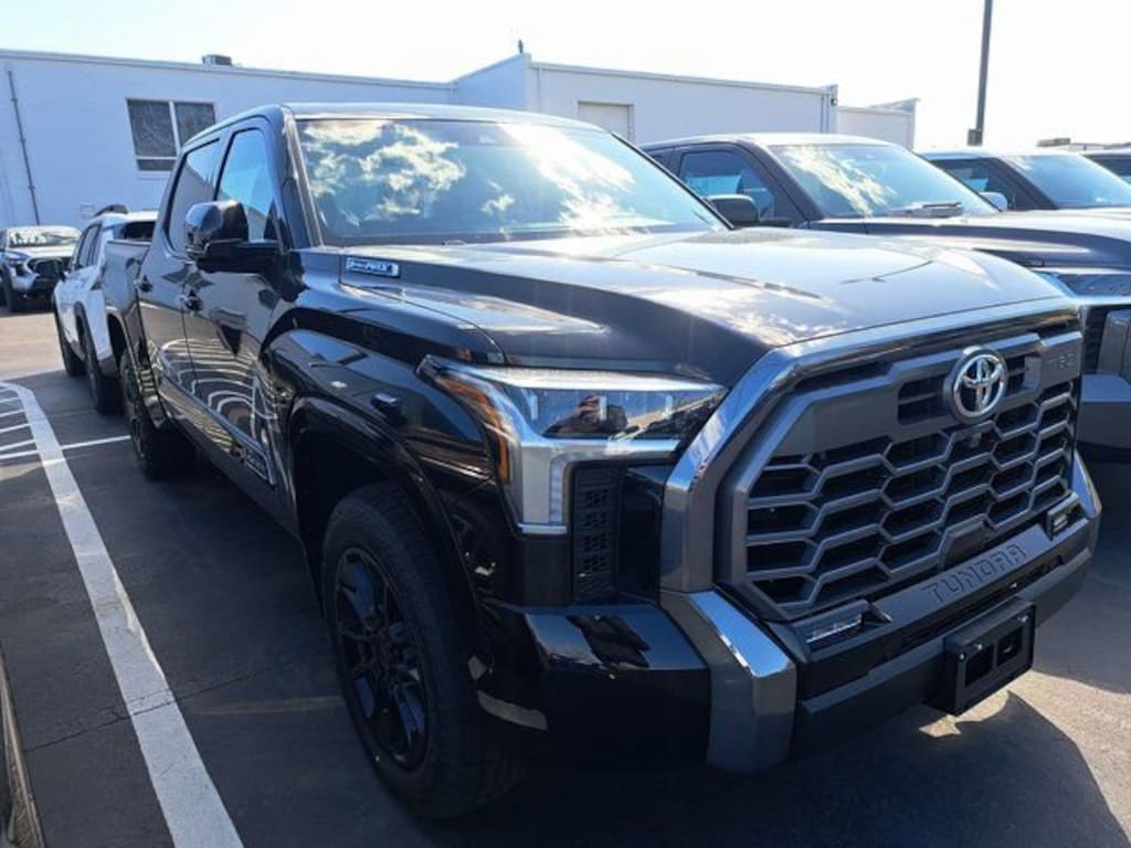 2025 Toyota Tundra Hybrid Platinum Platinum 3.4L V6. 3.4L V6 4WD 10-Speed Automatic Midnight Black Dealer Discount of $1,000 off MSRP TRD Off-Road Package (Front & Rear Mud Guards, Multi-Terrain Back Monitor, and Wheels: 20" x 8.5" Black Alloy), 3.4L V6, 10" Color Head-Up Display (HUD), 12 Speakers, 3.31 Axle Ratio, 4-Wheel Disc Brakes, ABS brakes, Air Conditioning, All Weather Floor Liners (TMS), Alloy wheels, AM/FM radio: SiriusXM, Apple CarPlay/Android Auto, Auto High-beam Headlights, Auto-dimming door mirrors, Auto-dimming Rear-View mirror, Automatic temperature control, Brake assist, Bumpers: body-color, Delay-off headlights, Driver door bin, Driver vanity mirror, Dual front impact airbags, Dual front side impact airbags, Electronic Stability Control, Emergency communication system: Safety Connect (10-year trial), Exterior Parking Camera Rear, Front anti-roll bar, Front Bucket Seats, Front Center Armrest, Front dual zone A/C, Front fog lights, Front reading lights, Front wheel independent suspension, Fully automatic headlights, Garage door transmitter: HomeLink, Heated & Ventilated Front Bucket Seats, Heated door mirrors, Heated front seats, Heated rear seats, Heated steering wheel, Illuminated entry, Knee airbag, Leather Shift Knob, Leather steering wheel, Low tire pressure warning, Memory seat, Navigation System, Occupant sensing airbag, Outside temperature display, Overhead airbag, Overhead console, Panic alarm, Passenger door bin, Passenger vanity mirror, Power door mirrors, Power driver seat, Power moonroof, Power passenger seat, Power steering, Power windows, Premium Leather Seat Trim, Radio data system, Radio: Premium Audio w/JBL, Rain sensing wipers, Rear reading lights, Rear seat center armrest, Rear step bumper, Rear window defroster, Remote keyless entry, Security system, Speed control, Speed-sensing steering, Split folding rear seat, Stainless Steel Door Edge Guards (TMS), Steering wheel memory, Steering wheel mounted audio controls, Tachometer, Telescoping steering wheel, Tilt steering wheel, Traction control, Trip computer, Turn signal indicator mirrors, Variably intermittent wipers, Ventilated front seats, Ventilated rear seats, Voltmeter, and Wheels: 20" x 8" Dark-Painted Alloy. *Every Internet Price includes currently applicable incentives. Some incentives may require financing through the manufacturer's finance company on approved credit. Some manufacturer incentives may not be combined with special APR. You may also qualify for additional manufacturer incentive programs (E.G., College graduate, owner loyalty, and military). See dealer for more details about these programs. Your additional costs are sales tax, tag and title fees for the state in which the vehicle will be registered, any dealer-installed options and a $995 dealer processing fee (Virginia). Prices are subject to change, and prior sales are excluded. While every reasonable effort is made to ensure the accuracy of this information, we are not responsible for any errors or omissions contained on these pages. Please verify any information in question with the dealer. Price includes: $3000 - TMS Customer Cash . Exp. 12/01/2025