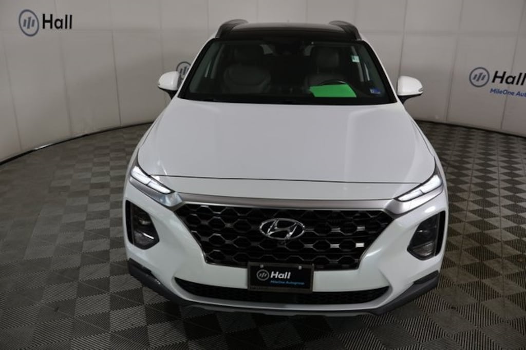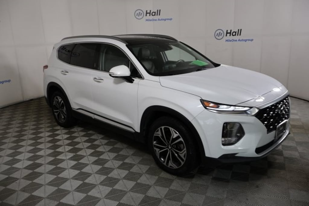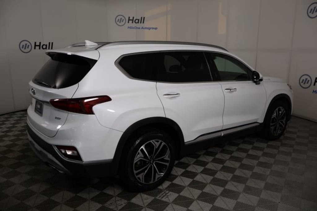 CARFAX One-Owner. Clean CARFAX. Certified. Quartz White 2019 Hyundai Santa Fe Ultimate FWD 8-Speed Automatic with SHIFTRONIC 2.0L Turbocharged We are currently offering Vehicle Purchase Home Delivery by appointment. Please contact for details., Espresso/Gray Leather, Alloy wheels, Apple CarPlay & Android Auto, Auto-dimming Rear-View mirror, Cargo Package, Front Center Armrest, Garage door transmitter: HomeLink, Heads-Up Display, Heated & Ventilated Front Bucket Seats, Heated front seats, Memory seat, Navigation System, Option Group 01, Passenger vanity mirror, Power door mirrors, Power driver seat, Power Liftgate, Power moonroof, Radio: Infinity Premium AM/FM/MP3 Display Audio, Rain sensing wipers, Rear seat center armrest, Roof rack: rails only, Variably intermittent wipers, Wheels: 19" x 7.5J Alloy.