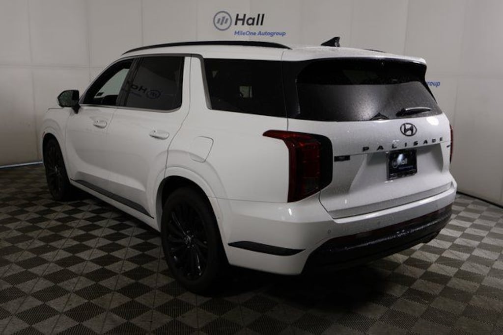 CARFAX One-Owner. Hyper White 2025 Hyundai Palisade Calligraphy Night Edition AWD 8-Speed Automatic with SHIFTRONIC V6 Palisade Calligraphy Night Edition, 4D Sport Utility, V6, 8-Speed Automatic with SHIFTRONIC, AWD, Hyper White, Black Leather, We are currently offering Vehicle Purchase Home Delivery by appointment. Please contact for details., Navigation System, Option Group 01, Power moonroof.