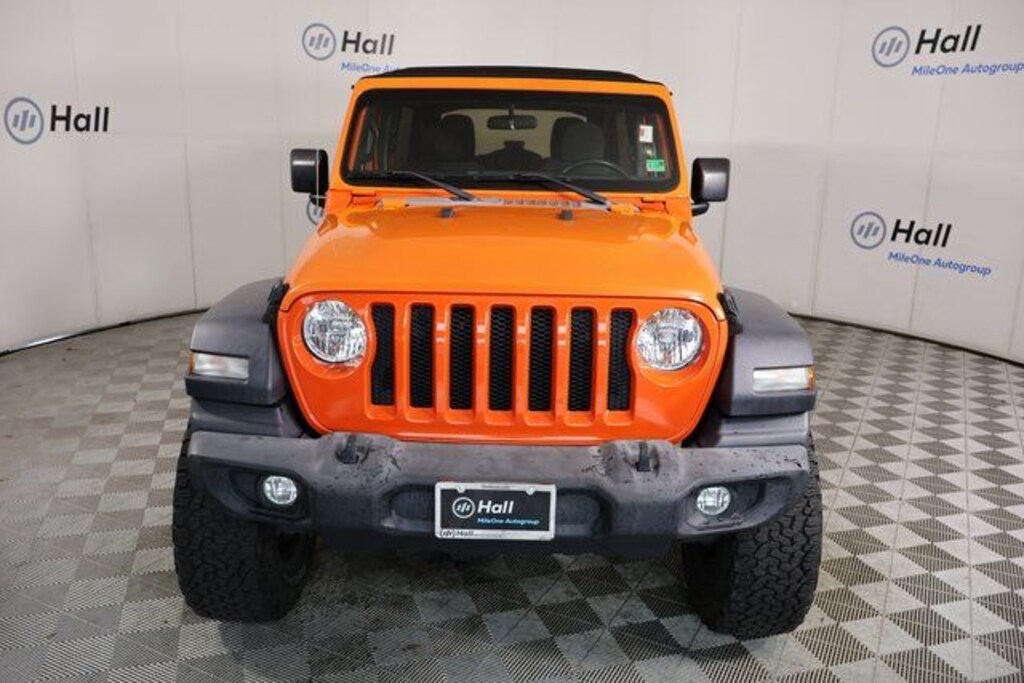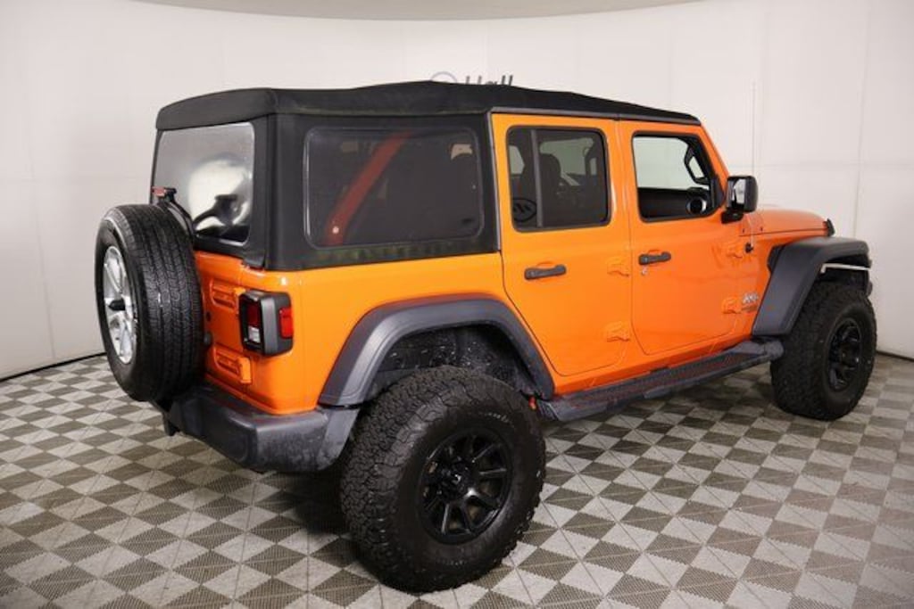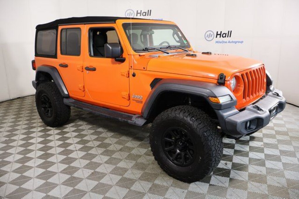 Clean CARFAX. Punkn Metallic Clearcoat 2018 Jeep Wrangler Unlimited Sport S 4WD 8-Speed Automatic 3.6L V6 24V VVT Wrangler Unlimited Sport S, 4D Sport Utility, 3.6L V6 24V VVT, 8-Speed Automatic, 4WD, Punkn Metallic Clearcoat, Black Cloth, We are currently offering Vehicle Purchase Home Delivery by appointment. Please contact for details., Automatic Headlamps, Cold Weather Group, Convenience Group, Deep Tint Sunscreen Windows, Front 1-Touch Down Power Windows, Heated Front Seats, Heated Steering Wheel, Leather Wrapped Steering Wheel, Power Heated Mirrors, Quick Order Package 24S Sport S, Remote Keyless Entry, Security Alarm, Speed Sensitive Power Locks, Sun Visors w/Illuminated Vanity Mirrors, Universal Garage Door Opener, Wheels: 17" x 7.5" Tech Silver Aluminum.