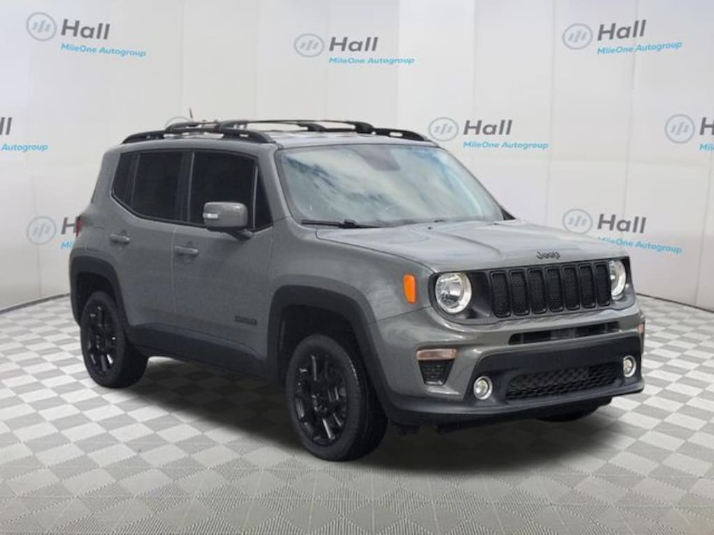 Sting-Gray Clearcoat 2020 Jeep Renegade Altitude 4WD 9-Speed 948TE Automatic 2.4L I4 We are currently offering Vehicle Purchase Home Delivery by appointment. Please contact for details., 115V Auxiliary Power Outlet, 17" x 7.0" Aluminum Wheels, 3.734 Final Drive Ratio, 4-Wheel Disc Brakes, 40/20/40 Rear Seat w/Trunk Pass-Thru, 6 Speakers, ABS brakes, Air Conditioning, Alloy wheels, Altitude Package, AM/FM radio: SiriusXM, Anti-whiplash front head restraints, Apple CarPlay/Android Auto, Auto-Dimming Rear-View Mirror, Automatic temperature control, Black Accent Stitching, Brake assist, Compass, Connectivity (Bridge Solution) (DISC), Delay-off headlights, Deluxe Cloth High-Back Bucket Seats, Driver door bin, Driver vanity mirror, Dual front impact airbags, Dual front side impact airbags, Electronic Stability Control, Emergency communication system, Exterior Mirrors w/Supplemental Signals, Four wheel independent suspension, Front anti-roll bar, Front Bucket Seats, Front Center Armrest, Front dual zone A/C, Front fog lights, Front reading lights, Fully automatic headlights, Global Telematics Box Module (TBM) (DISC), Gloss Black Exterior Accents, Heated door mirrors, Illuminated entry, Keyless Entry w/Panic Alarm, Knee airbag, Leather Wrapped Steering Wheel, Low tire pressure warning, Manual Adjust 4-Way Front Passenger Seat, Normal Duty Suspension, Occupant sensing airbag, Outside temperature display, Overhead airbag, Panic alarm, ParkView Rear Back-Up Camera, Passenger door bin, Passenger vanity mirror, Passive Entry Remote Start Package, Popular Equipment Group, Power 4-Way Driver Lumbar Adjust, Power Adjust 8-Way Driver Seat, Power door mirrors, Power steering, Power windows, Premium Cloth Bucket Seats, Quick Order Package 2XM Altitude, Radio data system, Radio: Uconnect 4 w/7" Display, Rear anti-roll bar, Rear window defroster, Rear window wiper, Remote keyless entry, Roof rack: rails only, Speed control, Split folding rear seat, Spoiler, Steering wheel mounted audio controls, Tachometer, Telescoping steering wheel, Tilt steering wheel, Traction control, Trip computer, Variably intermittent wipers, Vinyl Door Trim Panel, Voltmeter, Wheels: 17" x 7" Gloss Black.