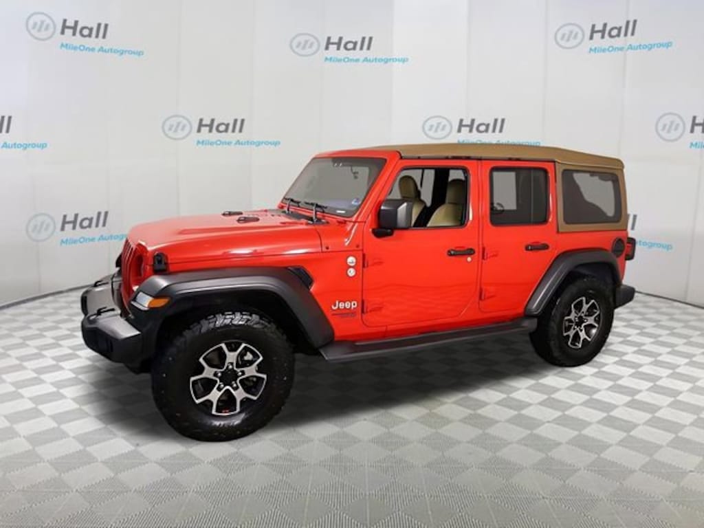 Cold Weather Group (Heated Front Seats and Heated Steering Wheel), Convenience Group (Universal Garage Door Opener), Quick Order Package 22S Sport S (Automatic Headlamps, Deep Tint Sunscreen Windows, Front 1-Touch Down Power Windows, Leather Wrapped Steering Wheel, Power Heated Mirrors, Remote Keyless Entry, Security Alarm, Speed Sensitive Power Locks, Sun Visors w/Illuminated Vanity Mirrors, and Wheels: 17" x 7.5" Tech Silver Aluminum), Trailer Tow & HD Electrical Group (240 Amp Alternator, 7 & 4 Pin Wiring Harness, 700 Amp Maintenance Free Battery, Auxiliary Switches, and Class II Receiver Hitch), 1-Year SiriusXM Radio Service, 3.45 Rear Axle Ratio, 4-Wheel Disc Brakes, 8 Speakers, ABS brakes, Air Conditioning, AM/FM radio, Aux Battery, Brake assist, Cloth Low-Back Bucket Seats, Compass, Delay-off headlights, Driver door bin, Driver vanity mirror, Dual front impact airbags, Dual front side impact airbags, Electronic Stability Control, Front anti-roll bar, Front Bucket Seats, Front Center Armrest w/Storage, Front fog lights, Front reading lights, Integrated roll-over protection, Integrated Voice Command w/Bluetooth, Low tire pressure warning, MOPAR All-Weather Floor Mats (DISC), Non-Lock Fuel Cap w/o Discriminator, Normal Duty Suspension, Occupant sensing airbag, Outside temperature display, ParkView Rear Back-Up Camera, Passenger door bin, Passenger vanity mirror, Power steering, Premium Tan Sunrider Soft Top, Radio data system, Radio: Uconnect 3 w/5" Display, Rear anti-roll bar, Rear reading lights, SiriusXM Satellite Radio, Soft Top Window Storage Bag, Speed control, Split folding rear seat, Steering wheel mounted audio controls, Stop-Start Dual Battery System, Tachometer, Telescoping steering wheel, Tilt steering wheel, Traction control, Trip computer, Variably intermittent wipers, and Wheels: 17" x 7.5" Black Steel Styled. Recent Arrival!