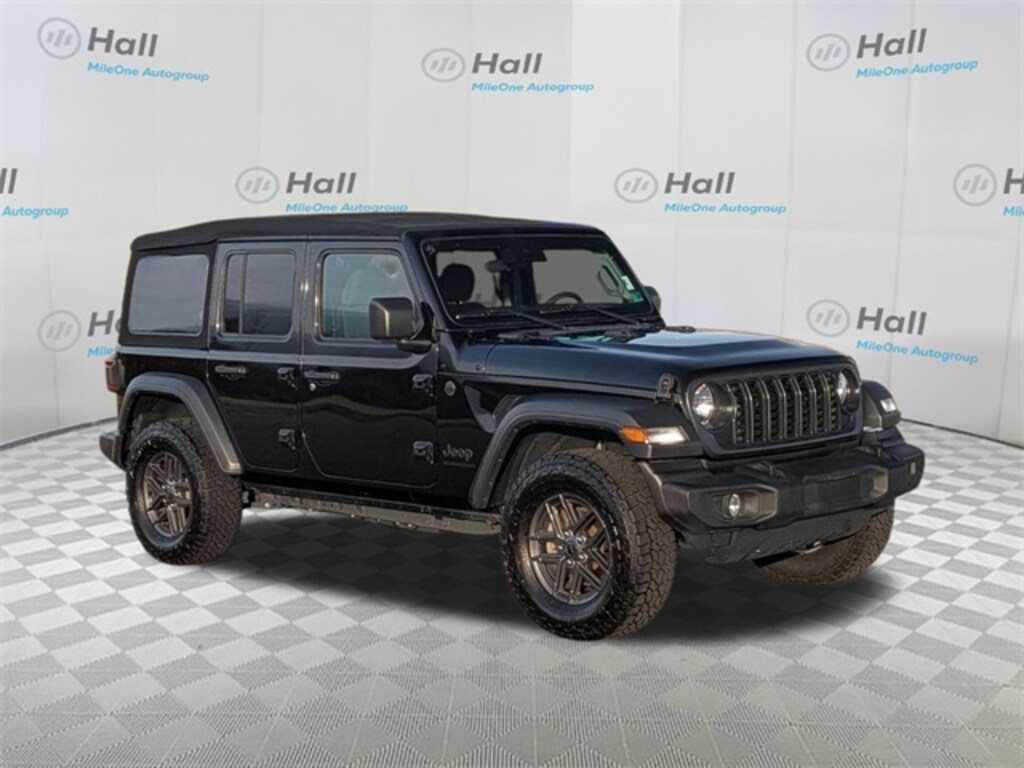 Clean CARFAX. Black Clearcoat 2024 Jeep Wrangler Sport S 4WD 8-Speed Automatic 3.6L V6 24V VVT We are currently offering Vehicle Purchase Home Delivery by appointment. Please contact for details., 110 MPH Vehicle Max Speed Calibration, 2-Door Passive Entry, Front Door Locks, 3.45 Overall Top Gear Ratio, 4-Wheel Disc Brakes, 8 Speakers, ABS brakes, Advanced Brake Assist, Air Conditioning, Air Conditioning w/Auto Temperature Control, Air Filtering, AM/FM radio, Apple CarPlay/Android Auto, Auto High Beam Headlamp Control, Automatic Headlamps, Aux Battery, Blind Spot & Cross Path Detection, Brake assist, Cloth Low-Back Bucket Seats, Cluster 7.0" TFT Color Display, Compass, Convenience Group, Corning Gorilla Glass, Deep Tint Sunscreen Windows, Delay-off headlights, Driver door bin, Driver vanity mirror, Dual front impact airbags, Dual front side impact airbags, Electronic Stability Control, Emergency/Assistance Call, Enhanced Adaptive Cruise Control, Front 1-Touch Down Power Windows, Front anti-roll bar, Front Bucket Seats, Front Center Armrest w/Storage, Front fog lights, Front reading lights, Full Speed Forward Collision Warning Plus, Heated Front Seats, Heated Steering Wheel, Injection Molded Black Rear Bumper, Integrated roll-over protection, LED Taillamps, Low tire pressure warning, MOPAR All-Weather Floor Mats, Mopar Black Fuel Filler Door, MOPAR Doors Off Mirror Kit, MOPAR Satin Black Grille, Non-Lock Fuel Cap w/o Discriminator, Normal Duty Suspension, Occupant sensing airbag, Outside temperature display, Overhead airbag, ParkSense Rear Park Assist System, ParkView Rear Back-Up Camera, Passenger door bin, Passenger vanity mirror, Power Heated Mirrors, Power steering, Premium Wrapped Steering Wheel, Quick Order Package 24S Sport S, Radio data system, Radio: Uconnect 5 w/12.3" Display, Rear anti-roll bar, Rear reading lights, Remote Keyless Entry, Remote Start System, Safety Group, Security Alarm, Speed control, Speed Sensitive Power Locks, Split folding rear seat, Sport S, Steering wheel mounted audio controls, Stop-Start Dual Battery System, Sun Visors w/Illuminated Vanity Mirrors, Tachometer, Telescoping steering wheel, Tilt steering wheel, Traction control, Trip computer, Universal Garage Door Opener, Variably intermittent wipers, Wheels: 17" x 7.5" Black Steel Styled, Wheels: 17" x 7.5" Gray.