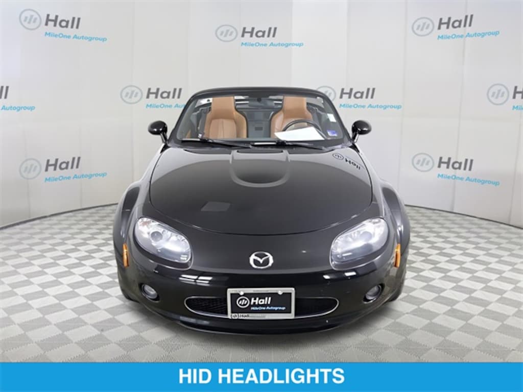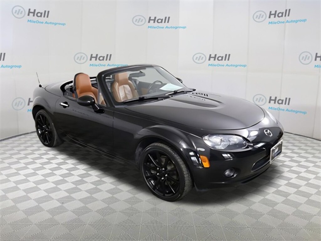 Brilliant Black Clearcoat 2007 Mazda Miata PRHT Grand Touring RWD 6-Speed Automatic Sport 2.0L I4 DOHC VVT 16V We are currently offering Vehicle Purchase Home Delivery by appointment. Please contact for details., Tan w/Leather Upholstery, 17" Aluminum Alloy Wheels, 7 Speakers, Advanced Keyless Entry, Air Conditioning, AM/FM Stereo w/Single CD Player, Anti-Theft Alarm, Cargo Net, CD player, Convertible HardTop, Convertible roof wind blocker, Dual front impact airbags, Dual front side impact airbags, Dynamic Stability Control w/Traction Control, Glass rear window, Heated front seats, Occupant sensing airbag, Passenger cancellable airbag, Power convertible roof, Power windows, Premium Package 2, Reclining Front Bucket Seats, Remote keyless entry, Satellite Radio, Xenon High-Intensity Discharge Headlights.
