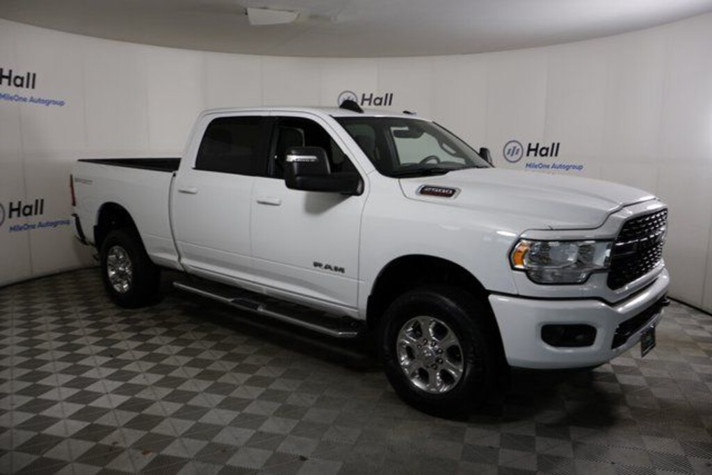 CARFAX One-Owner. Clean CARFAX. Bright White Clearcoat 2024 Ram 2500 Big Horn 4WD 8-Speed Automatic 6.4L V8 2500 Big Horn, 4D Crew Cab, 6.4L V8, 8-Speed Automatic, 4WD, Bright White Clearcoat, Black Cloth, We are currently offering Vehicle Purchase Home Delivery by appointment. Please contact for details., 2 Way Rear Headrest Seat, 2nd Row In Floor Storage Bins, 4 Way Front Headrests, 40/20/40 Split Bench Seat, 4G LTE Wi-Fi Hot Spot, 8.4" Touchscreen Display, Apple CarPlay, Auto Power-Folding Mirrors, Bed Utility Group, Big Horn IP Badge, Black Exterior Mirrors, Black Interior Accents, Bluetooth Handsfree Phone & Audio, Body Color Door Handles, Body Color Grille Surround, Center Hub, Connectivity - US/Canada, Dual Glove Boxes, Exterior Mirrors Courtesy Lamps, Exterior Mirrors w/Heating Element, Exterior Mirrors w/Supplemental Signals, Foam Bottle Insert (Door Trim Panel), Footwell Courtesy Lamp, For Details, Visit DriveUconnect.com, For More Info, Call 800-643-2112, Forward & Reverse Utility Lights, Front Armrest w/Cupholders, Front Center Seat Cushion Storage, Front Fog Lamps, Front Seat Back Map Pockets, Global Telematics Box Module (TBM), Glove Box Lamp, Google Android Auto, GPS Antenna Input, GPS Navigation, Integrated Center Stack Radio, Integrated Voice Command w/Bluetooth, Leather Wrapped Steering Wheel, LED Bed Lighting, Level 1 Equipment Group, Locking Lower Glove Box, Manual Adjust 4-Way Front Passenger Seat, Mirror Running Lights, MOPAR Deployable Bed Step, MOPAR Spray In Bedliner, Painted Front Bumper, Painted Rear Bumper, ParkSense Front/Rear Park Assist System, Power 2-Way Driver Lumbar Adjust, Power Adjust 8-Way Driver Seat, Power Adjust Mirrors, Power Adjustable Convex Aux Mirrors, Power Heated Fold Telescope Mirrors, Power Telescoping Mirrors, Premium Cloth 40/20/40 Bench Seat, Protection Group, Quick Order Package 2GZ Big Horn, Radio: Uconnect 5 W w/8.4" Display (A62), Rear 60/40 Folding Seat, Rear Dome w/On/Off Switch Lamp, Remote USB Port - Charge Only, Selectable Tire Fill Alert, SiriusXM Radio Service, SiriusXM Satellite Radio, Sport Appearance Package, Sport Decal, Steering Wheel Mounted Audio Controls, Storage Tray, Tow Hooks, Wheels: 18" x 8.0" Polished Aluminum.