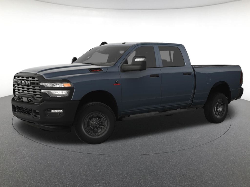 Bed Convenience Group (LED Bed Lighting and MOPAR Spray In Bedliner), Cold Weather Group (Engine Block Heater and MOPAR Winter Front Grille Cover), Quick Order Package 24A Tradesman, Safety Group (Active Lane Management System, Adaptive Steering System, Auto High Beam Headlamp Control, Auto-Dimming Rear-View Mirror, Cluster 7.0" TFT Color Display, Drowsy Driver Detection, Luxury Steering Wheel, Rain Sensitive Windshield Wipers, Steering Wheel Mounted Audio Controls, and Traffic Sign Recognition), Tradesman Level 1 Equipment Group (115V Auxiliary Front Power Outlet, 12" Touchscreen Display, 2 Way Rear Headrest Seat, 4 Way Front Headrests, 40/20/40 Split Bench Seat, 400W Inverter, 4G LTE Wi-Fi Hot Spot, Air Conditioning ATC w/Dual Zone Control, Alexa Built-In, Anti-Spin Differential Rear Axle, Apple CarPlay, Black Exterior Mirrors, Carpet Floor Covering, Cloth 40/20/40 Bench Seat, Connected Travel & Traffic Services, Connectivity - US/Canada, Disassociated Touchscreen Display, Emergency Vehicle Alert System (EVAS), Exterior 115V AC Outlet, Exterior Mirrors Courtesy Lamps, Exterior Mirrors w/Heating Element, Exterior Mirrors w/Supplemental Signals, Front & Rear Floor Mats, Front Armrest w/Cupholders, Global Telematics Box Module (TBM), Google Android Auto, GPS Antenna Input, GPS Navigation, HD Radio, Integrated Voice Command w/Bluetooth, Manual Adjust 4-Way Driver Seat, Manual Adjust 4-Way Front Passenger Seat, Manual Folding Exterior Mirrors, Manual Telescoping Mirrors, Mirror Running Lights, Mopar Black Tubular Side Steps, Off-Road Info Pages, ParkSense Front/Rear Park Assist System, Power Adjust Mirrors, Power Adjustable Convex Aux Mirrors, Power Heated Folding Telescope Mirrors, Radio: Uconnect 5 Nav w/12.0" Display, Rear Folding Seat, Rear Power Sliding Window, Remote USB Port - Charge Only, Selectable Tire Fill Alert, SiriusXM Radio Service, SiriusXM w/360L, Storage Tray, Tinted Acoustic Windshield Glass, and Trailer Tow Pages), 4-Wheel Disc Brakes, 6 Speakers, ABS brakes, Air Conditioning, AM/FM radio: SiriusXM, Apple CarPlay/Android Auto, Black Wheel Center Hub, Blind Spot & Cross Path Detection, Brake assist, Compass, Delay-off headlights, Delete Deployable Bed Step (DISC), Driver door bin, Dual front impact airbags, Dual front side impact airbags, Electronic Stability Control, Front anti-roll bar, Front Center Armrest w/Storage, Front fog lights, Front License Plate Bracket, Front reading lights, Fully automatic headlights, Heavy Duty Vinyl 40/20/40 Split Bench Seat, Illuminated entry, LED Tail Lamps, Low tire pressure warning, Occupant sensing airbag, Outside temperature display, Overhead airbag, Overhead console, Panic alarm, ParkView Rear Back-Up Camera, Passenger door bin, Passenger vanity mirror, Power steering, Power windows, Radio data system, Radio: Uconnect 5 w/